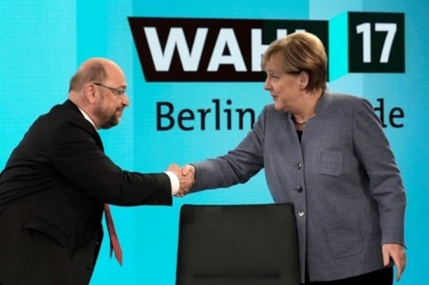 La chancelière allemande Angela Merkel et le président des sociaux-démocrates Martin Schulz avant un débat télévisé le 24 septembre. Photo : AFP/VNA/CVN |