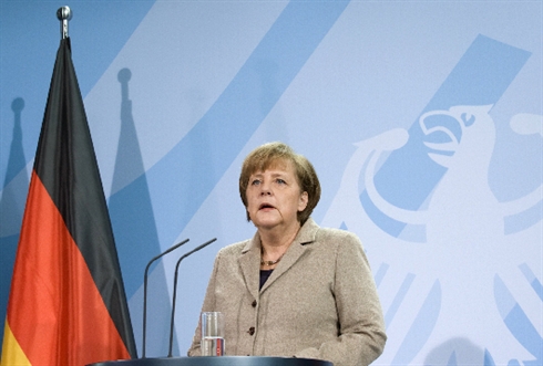 | La chancelière allemande Angela Merkel prend la parole après l'annonce de la démission du président Christian Wulff, le 17 février à Berlin. |
