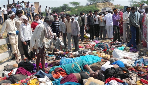 | Des corps de victimes après une bousculade près du temple de Ratangarh dans le district de Datia, le 13 octobre 2013. |
