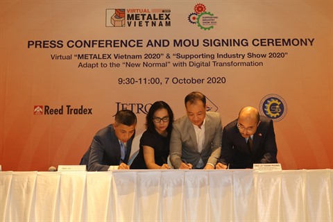 La société spécialisée en organisation d’expositions Reed Tradex Vietnam, en collaboration avec l'Organisation japonaise du commerce extérieur (JETRO) à Hô Chi Minh-Ville, le Centre de promotion du commerce et de l’investissement de Hô Chi Minh-Ville (ITPC) et le Centre pour le développement des industries auxiliaires de Hô Chi Minh-Ville (CSID) a tenu le 7 octobre à la mégapole du Sud une conférence de presse et une cérémonie de signature pour présenter "Metalex Vietnam 2020" ainsi que l’"Exposition de l’industrie auxiliaire 2020".