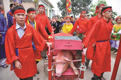 Les fêtes villageoises au cours desquelles sont pratiqués des sacrifices rituels de cochons ou de buffles devant un large public, dont des enfants, ont ainsi été modifiées. Par exemple, le village de Nem Thuong à Bac Ninh a abandonné le rituel du "tranchage du cochon" en public lors de sa fête traditionnelle du printemps. Les années précédentes, elle avait fait l’objet de critiques assez virulentes concernant la partie durant laquelle un cochon est coupé en deux au niveau du thorax à l’aide d’un sabre.