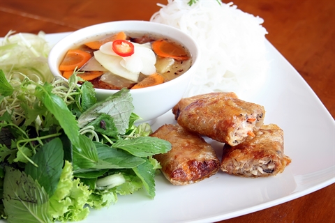 | Le "bún nem", vermicelle au rouleau impérial. |