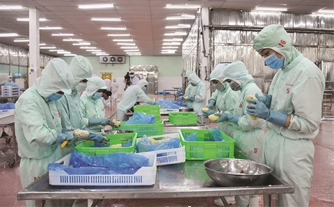 | Transformation du durian pour l'exportation, au parc industriel de Giao Long. |