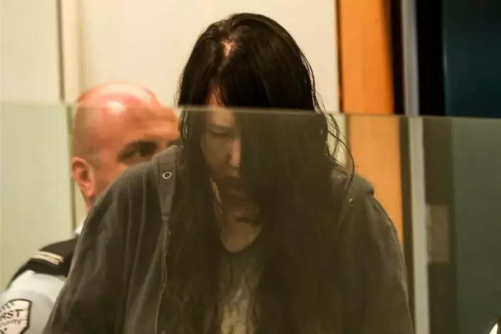 | Hangkyung Lee, condamnée à la perpétuité pour avoir tué ses deux enfants et avoir caché leurs corps dans des valises pendant des années, comparaît devant la Haute Cour d'Auckland, en Nouvelle-Zélande, le 26 novembre 2025. |
