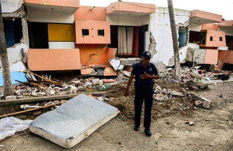 | Des maisons effondrées après un séimse à Juchitan, le 10 septembre 2017 dans l'État d'Oaxaca, au Mexique. |
