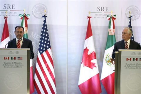 Sur la crise au Venezuela, M. Tillerson a écarté toute option d'intervention militaire. Les trois ministres ont appelé le président vénézuélien Nicolas Maduro à restaurer l'ordre constitutionnel. "Nous voudrions voir se produire là-bas une transition pacifique" a exprimé M. Tillerson.