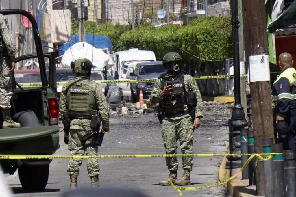 | Des médecins légistes et des militaires sur le site de l'explosion d'une voiture piégée à Jerecuaro, dans l'État de Guanajuato, le 24 octobre au Mexique. |