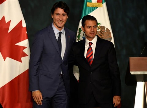 | Le Premier ministre canadien Justin Trudeau (gauche) et le président mexicain Enrique Peña Nieto, le 12 octobre à Mexico. |