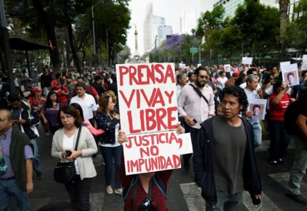 | Manifestation de soutien à Mexico après le meurtre d'une journaliste de "La Jornada", le 25 mars 2017. |