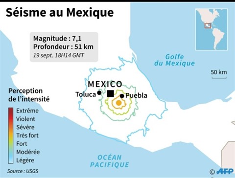 >>Un puissant séisme secoue le Centre du Mexique, au moins 49 morts