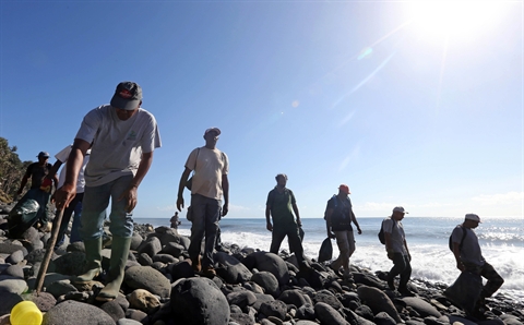 | Une fouille minutieuse, le 10 août sur le rivage au nord de l'île de La Réunion. |