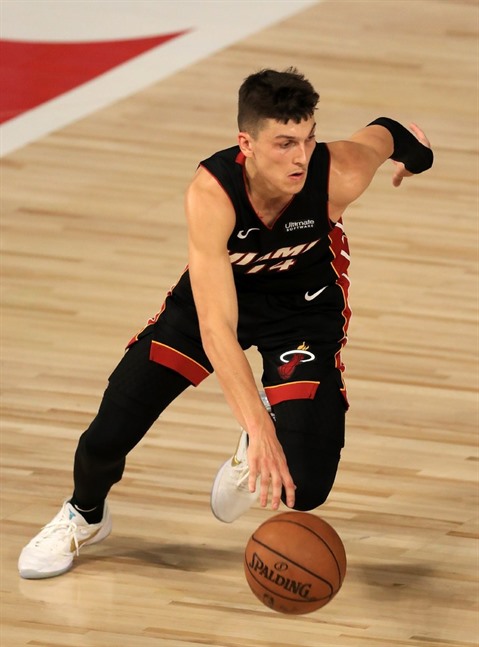 | Le jeune joueur du Miami Heat, Tyler Herro, le 8 septembre à Lake Buena Vista. |