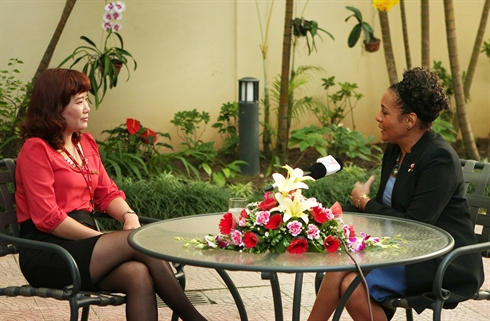 | Michaëlle Jean (droite) accorde, le 13 novembre à Hanoi, au Courrier du Vietnam une interview exclusive sur la Francophonie et les relations vietnamo-canadiennes. |