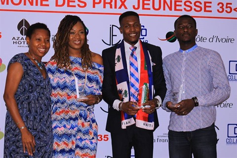 | Le Haïtien Michel Joseph (2e à droite) reçoit le Super Prix du jeune francophone de l’année. |