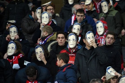 | Les supporters lillois ont porté des masques à l’effigie de Michel Seydoux, au stade Pierre-Mauroy, ce vendredi 13 janvier. |