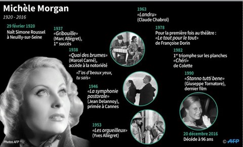 Michèle Morgan a tourné quelque 70 films dont certains comme Remorques encore avec Gabin (1939), Les grandes manœuvres avec Gérard Philipe (1955) sont devenus des classiques.