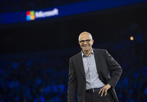 | Le PDG de Microsoft, Satya Nadella, le 16 juillet lors d'une conférence à Washington. |
