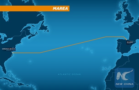 Le câble de 6.600 km, baptisé MAREA, sera le premier à connecter les États-Unis à l'Europe du Sud, passant par Virginia Beach dans l'État de Virginia à la ville espagnole de Bilbao et ensuite au-delà aux plateformes en Europe, en Afrique, au Moyen-Orient et en Asie.