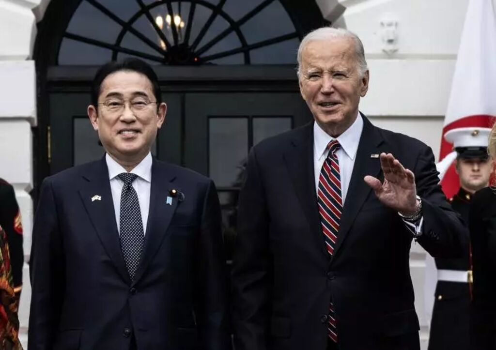 | Le président américain Joe Biden (droite) accueille le Premier ministre japonais Fumio Kishida à la Maison Blanche à Washington, le 9 avril. |