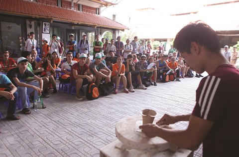 | Des visiteurs dans le village de la céramique de Bat Tràng. |