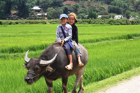 Et si les buffles font partie du paysage au même titre que le «nón» - ce chapeau pointu caractéristique du paysan des deltas -, ils ne sont pas vindicatifs, tant s’en faut. Combien de fois en ai-je croisé au détour d’une promenade qui, d’un pas placide de brave bovin satisfait du devoir accompli, cheminaient vers leur abri au crépuscule venant, conduit par un enfant débonnaire qui s’en faisait obéir d’un simple claquement de langue ou d’un coup de vergette bien sentie…
