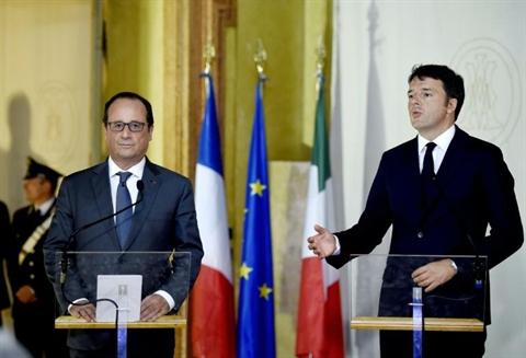 | Le président français François Hollande et le Premier ministre italien Matteo Renzi lors d'une conférence de presse le 17 septembre à Modène |