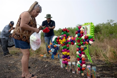 | Un mémorial a été improvisé près de l'endroit où a été retrouvé le camion, à San Antonio. |