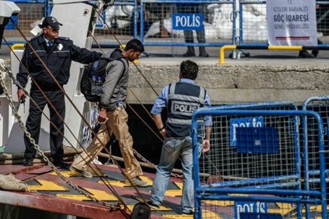 | Arrivée au port turc de Dikili d'un ferry transportant des migrants en provenance de Grèce, le 4 avril. |