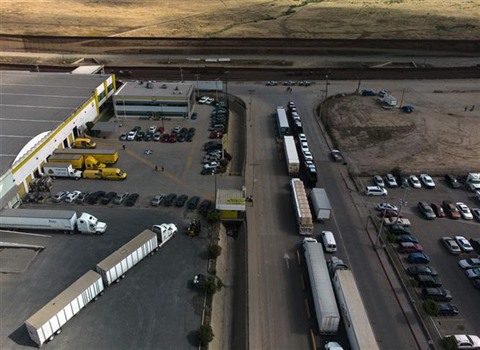 | Au port commercial à Otay (Tijuana au Mexique) où les véhicules transportant des marchandises du Mexique aux |