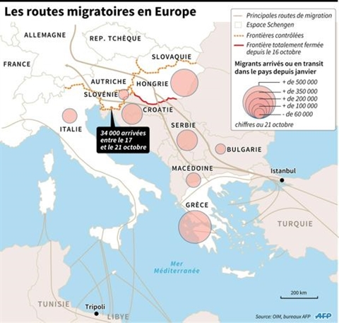 Les dirigeants de dix États membres de l'UE ainsi que la Serbie, la Macédoine et l'Albanie, réunis jusque tard le 25 octobre autour du président de la Commission européenne Jean-Claude Juncker, sont finalement tombés d'accord sur un plan d'urgence qui mêle aide humanitaire aux milliers de migrants et réfugiés transitant par leurs territoires et mesures visant à mieux contrôler les déplacements sur la route des Balkans de l'Ouest.