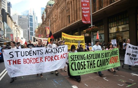 | Manifestation contre la politique du gouvernement australien envers les migrants. |