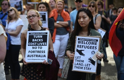 | Manifestation contre la politique du gouvernement australien envers les migrants, le 12 septembre 2015 à Sydney. |