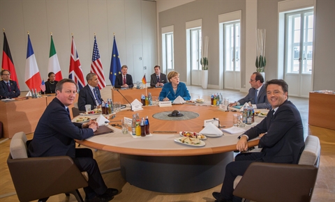 | Réunion entre les dirigeants américain, allemand, français, italien et britannique, le 25 avril à Hanovre, en Allemagne. |