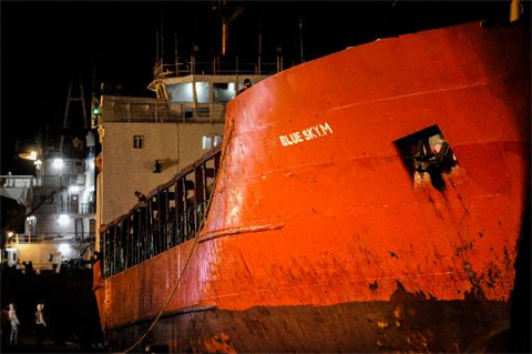 | Le Blue Sky M, le 31 décembre 2014 dans le port de Gallipoli en Italie |