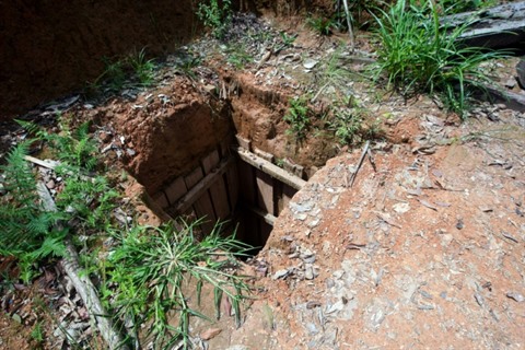 | Un puits abandonné dans une mine d'or illégale, en Guyane. |