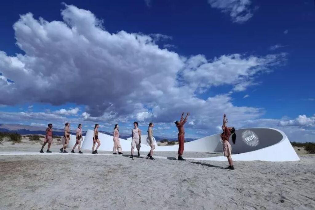 | Des danceurs devant une oeuvre de Sarah Meyohas dans le festival Desert X en Californie le 7 mars. |