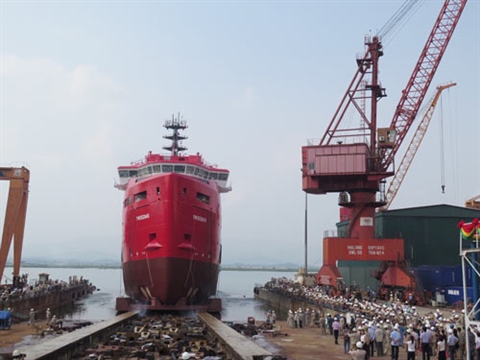 | Le ravitailleur de plate-forme construit par le chantier naval de Ha Long. |