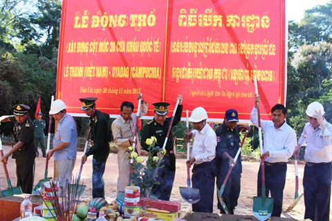 | Cérémonie de mise en chantier de la borne N°30 sur la ligne frontalière Vietnam-Cambodge, le 20 novembre. |