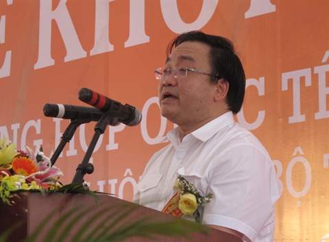 | Le vice-Premier ministre Hoàng Trung Hai prend la parole lors de la cérémonie de mise en chantier du port international de l’aciérie de Nghi Son, le 9 septembre à Thanh Hoa (Centre). |