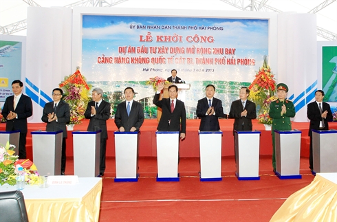 | Le Premier ministre Nguyên Tân Dung à la cérémonie de mise en chantier de l'aéroport Cat Bi, ville de Hai Phong. |