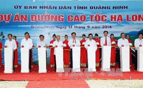 | Cérémonie du chantier de l'autoroute qui reliera la ville de Ha Long au pont de Bach Dang de la ville portuaire de Hai Phong, le 13 septembre dans la ville de Ha Long, en présence du Premier ministre Nguyên Tân Dung. |