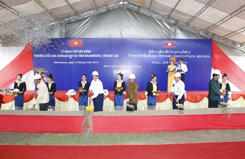 | Le Premier ministre Nguyên Tân Dung à la cérémonie de mise en chantier d’une école au Laos. |