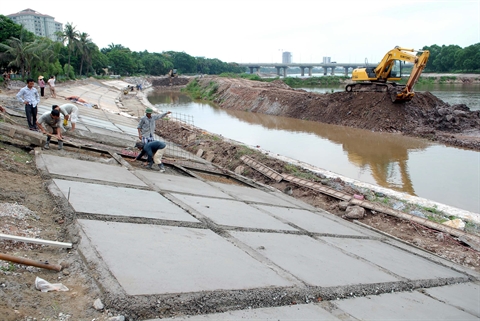 | Mise en chantier d'ouvrages d’évacuation des eaux pluviales dans le lac Linh Dàm, Hanoi. |