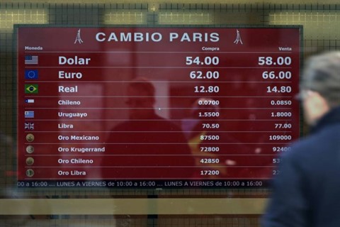 | Un tableau de change, le 20 août à Buenos Aires, en Argentine. |