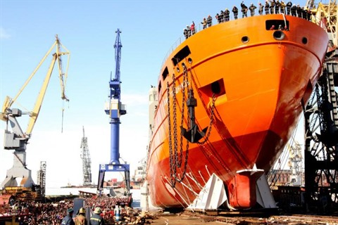 | Le brise-glace russe Akademik Treshnikov à Saint-Petersbourg. |