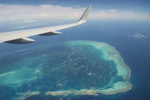 | Vue aérienne de la réserve marine de Papahanaumokuakea, le 1er septembre à Hawaï. |