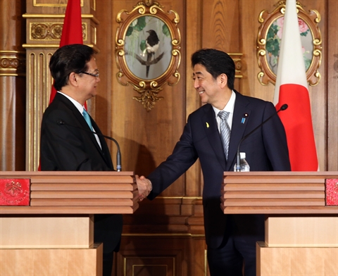 | Le Premier ministre vietnamien Nguyên Tân Dung (gauche) et son homologue japonais Shinzo Abe. |