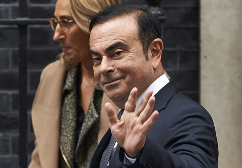 | Le PDG de Nissan, Carlos Ghosn (droite), quitte le 10 Downing Street à Londres après une rencontre avec la Première ministre Theresa May, le 14 octobre. |