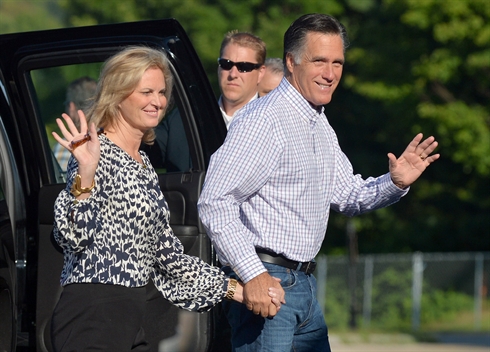 | Mitt Romney et son épouse le 27 août à Wolfeboro, en New Hampshire. |