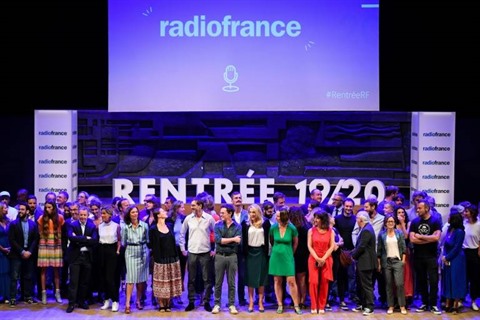 | Les animateurs de Radio France posent pour une photo de famille lors d'une conférence de presse à Paris, le 27 août, afin de présenter les programmes de la saison à venir. |